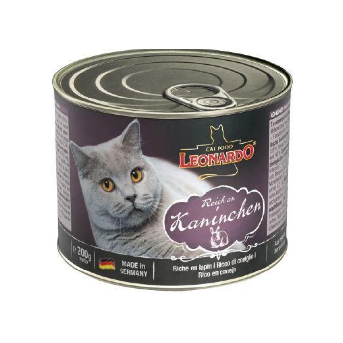 Carnea fragedă de iepure are un conținut scăzut de grăsimi și ușor de digerat. Animalul tău de companie va aprecia gustul atractiv al iepurilor din conserve. Pisicile, ca și rudele lor sălbatice, sunt adevărați prădători. Prin urmare, baza conservelor Leonardo este doar carnea proaspătă. Datorita valorii biologice a acestor produse, pisica va avea nevoie de relativ mai putina hrana pentru a-si satisface nevoile zilnice.